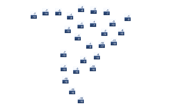 | -13 | -12 | -8 | -5 | -1 | 3 | 6 | 6 | 2 | -2 | -7 | -11 |