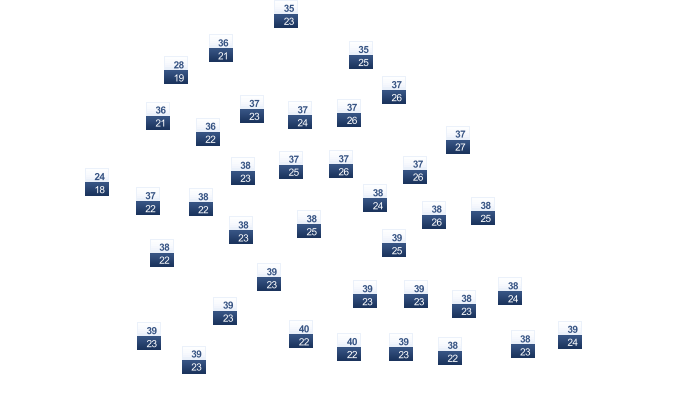 | 25 | 25 | 25 | 25 | 26 | 29 | 30 | 30 | 30 | 30 | 29 | 27 |