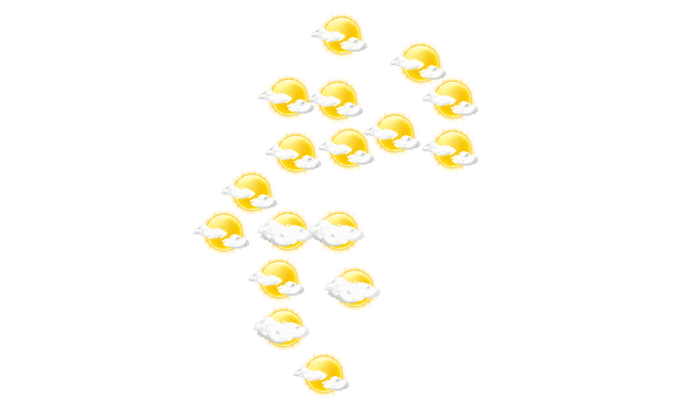 In Thiès Nones ist es morgens bewölkt, die Sonne zeigt sich nur vereinzelt bei Temperaturen von 16°C. Am Mittag ist es leicht bewölkt und die Temperatur erreicht 30°C. Abends ziehen in Thiès Nones Wolkenfelder durch und die Temperaturen liegen zwischen 19 und 21 Grad. Nachts ist ein Blick auf die Sterne nur vereinzelt bei sonst wolkigem Himmel möglich bei einer Temperatur von 18°C.