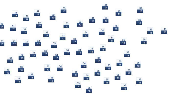 | 17 | 17 | 17 | 18 | 20 | 23 | 25 | 25 | 24 | 24 | 23 | 20 |