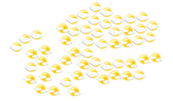 In Gandiaye ist es vormittags und auch am Nachmittag vielfach wolkig, gebietsweise kann sich auch die Sonne durchsetzen bei Temperaturen von 24 bis 35°C. Abends ist in Gandiaye der Himmel bedeckt bei Temperaturen von 29 bis 31°C. In der Nacht bleibt es bedeckt bei Werten von 25°C.