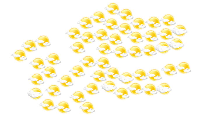 In Kaolack gibt es am Morgen nur selten Lücken in der Wolkendecke bei Werten von 21°C. Später zeigt sich die Sonne zwischen einzelnen Wolken und das Thermometer klettert auf 39°C. Am Abend gibt es in Kaolack keine Wolken bei Temperaturen von 25 bis 34°C. Nachts bilden sich leichte Wolken und die Werte gehen auf 19°C zurück.