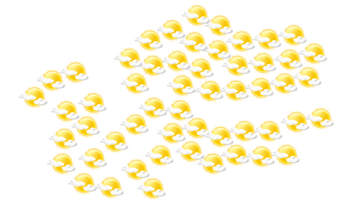 In Nioro du Rip gibt es am Tag überwiegend blauen Himmel mit vereinzelten Wolken bei Werten von 18 bis zu 35°C. Nachts verdecken einzelne Wolken den Himmel bei Tiefsttemperaturen von 17°C.