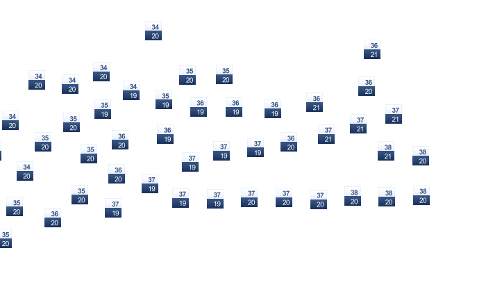 | 17 | 17 | 17 | 18 | 20 | 23 | 25 | 25 | 24 | 24 | 23 | 20 |
