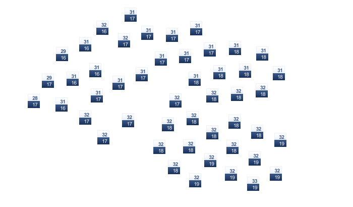 | 17 | 17 | 17 | 18 | 20 | 23 | 25 | 25 | 24 | 24 | 23 | 20 |