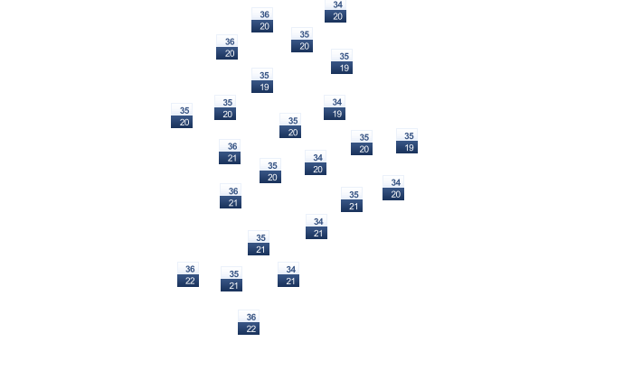 | 20 | 21 | 22 | 23 | 23 | 22 | 22 | 22 | 22 | 22 | 22 | 21 |