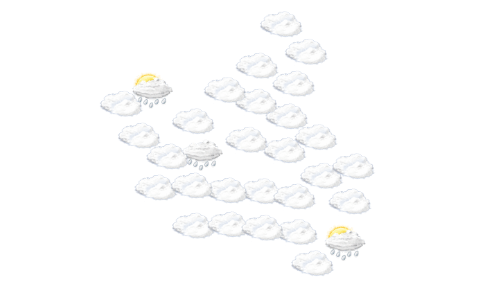 In Matsheumhlope Lots sind den ganzen Tag anhaltende Schauer zu erwarten bei Werten von 16 bis zu 19°C. Nachts ist ein Blick auf die Sterne nur vereinzelt bei sonst wolkigem Himmel möglich und die Temperatur fällt auf 15°C.