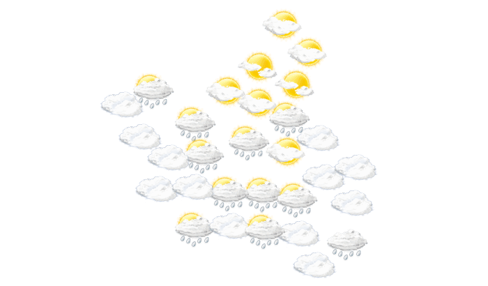 In Matsheumhlope Lots regnet es tagsüber bei Temperaturen von 17 bis 21°C. Nachts fällt Regen und die Werte gehen auf 16°C zurück.