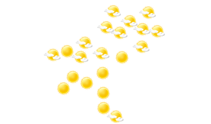 In Ruwa gibt es am Morgen lockere Bewölkung bei Temperaturen von 16°C. Im Laufe des Mittags zeigt sich die Sonne nur vereinzelt bei sonst wolkigem Himmel und die Temperatur steigt auf 27°C. Abends ist es in Ruwa leicht bewölkt bei Temperaturen von 19 bis 22°C. Nachts verdecken einzelne Wolken den Himmel bei Tiefstwerten von 16°C.