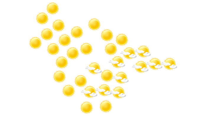 In Mazowe strahlt den ganzen Tag die Sonne bei Werten von 14 bis zu 29°C. In der Nacht ist es wolkenlos und die Temperatur fällt auf 11°C.