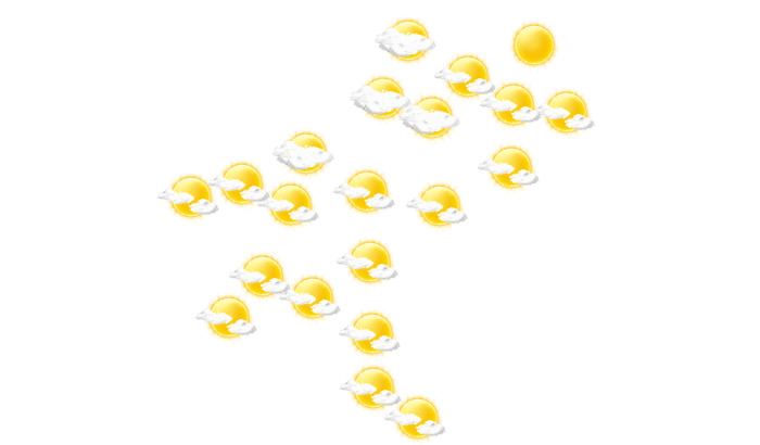 In Ruwa ist es morgens bewölkt, die Sonne zeigt sich nur vereinzelt bei Temperaturen von 17°C. Im weiteren Tagesverlauf ist es vom Nachmittag bis abends teils wolkig und teils heiter bei Temperaturen von 19 bis 26°C. In der Nacht ist es wolkenlos und das Thermometer fällt auf 14°C.