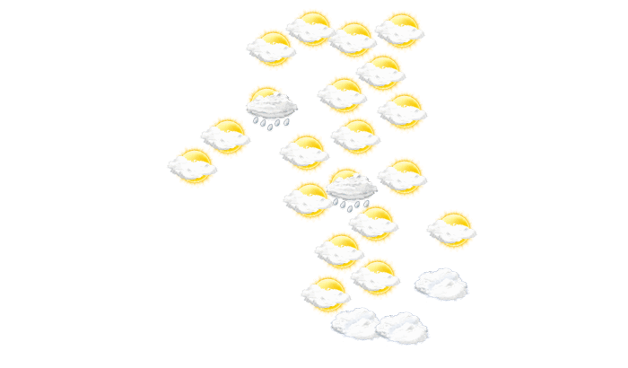 In Kadoma bleibt am Morgen die Wolkendecke geschlossen bei Temperaturen von 18°C. Im weiteren Verlauf des Tages kann sich vom Nachmittag bis abends die Sonne nicht durchsetzen und es ist wolkig bei Temperaturen von 19 bis 25°C. In der Nacht ist ein Blick auf die Sterne nur vereinzelt bei sonst wolkigem Himmel möglich bei einer Temperatur von 18°C.