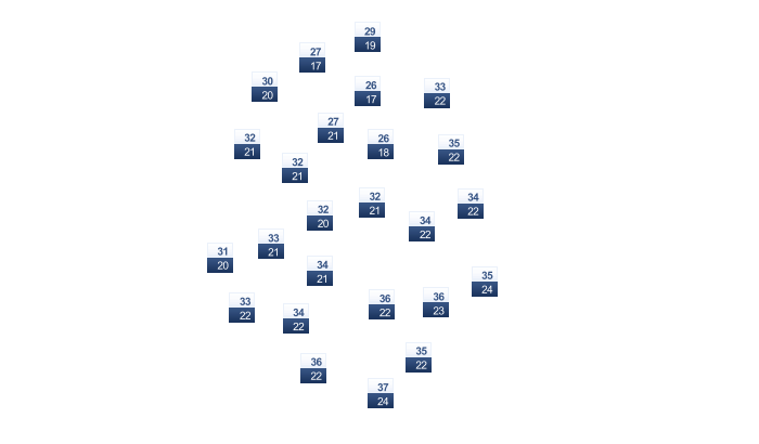 | 33 | 32 | 31 | 30 | 28 | 25 | 25 | 27 | 30 | 32 | 33 | 33 |