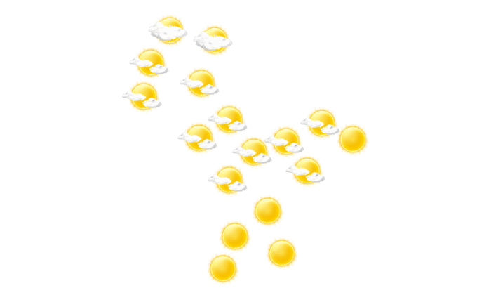 In Insiza ist es morgens wolkenlos bei Temperaturen von 14°C. Im weiteren Tagesverlauf gibt es am Nachmittag und am Abend lockere Bewölkung bei Werten von 17 bis zu 25°C. In der Nacht ist es leicht bewölkt und die Temperatur fällt auf 13°C.