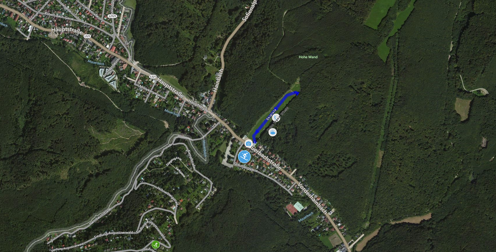 Hohe Wand Wiese liegt zwischen 258 (Tal) und 370 Metern (Berg) Höhe.