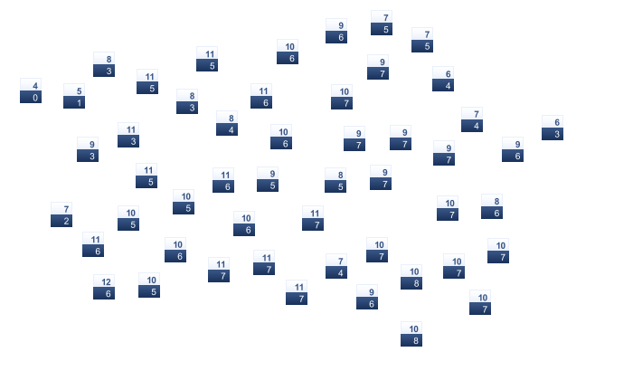 1 | 3 | 9 | 16 | 21 | 24 | 26 | 26 | 22 | 15 | 8 | 3 |