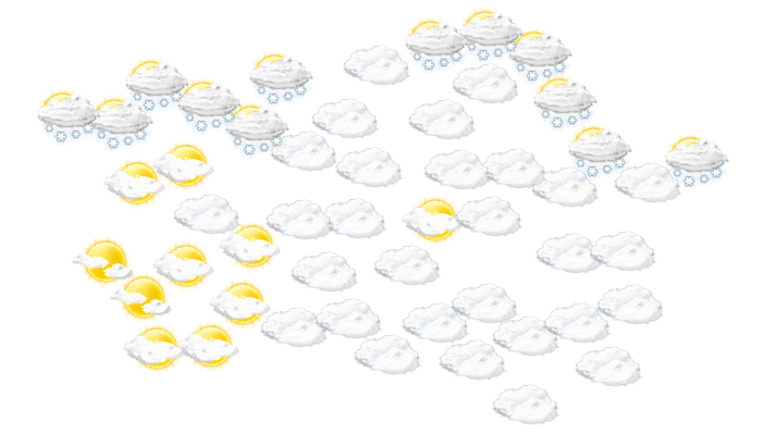 In Homenau schneit es am Morgen bei Werten von -5°C. Darüber hinaus ist am Nachmittag und am Abend der Himmel bedeckt, die Sonne ist nicht zu sehen bei Temperaturen von -7 bis -4°C. In der Nacht ist es überwiegend dicht bewölkt und die Werte gehen auf -10°C zurück. Mit Böen zwischen 12 und 35 km/h ist zu rechnen.