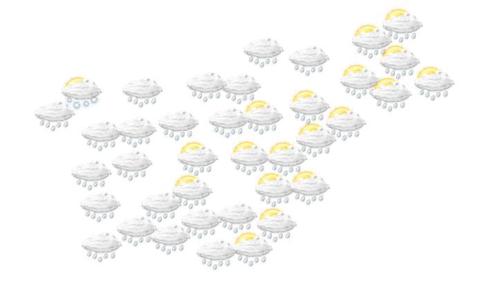 In Vipolže fällt von morgens bis zum Nachmittag Regen bei Werten von 7 bis zu 9°C. Abends gibt es in Vipolže nur selten Lücken in der Wolkendecke bei Werten von 6 bis zu 7°C. Nachts sind Teile des Himmels mit Wolken bedeckt und das Thermometer fällt auf 2°C. Böen können Geschwindigkeiten zwischen 15 und 35 km/h erreichen.