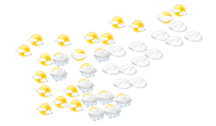 In Šmarca kommt es von Tagesbeginn bis zum Nachmittag zu einem Mix aus Sonne und Wolken bei Temperaturen von 1 bis 3°C. Am Abend schneit es in Šmarca und die Temperatur liegt bei 1°C. Nachts fällt Schnee und die Temperatur sinkt auf 0°C. Mit Böen zwischen 9 und 20 km/h ist zu rechnen.