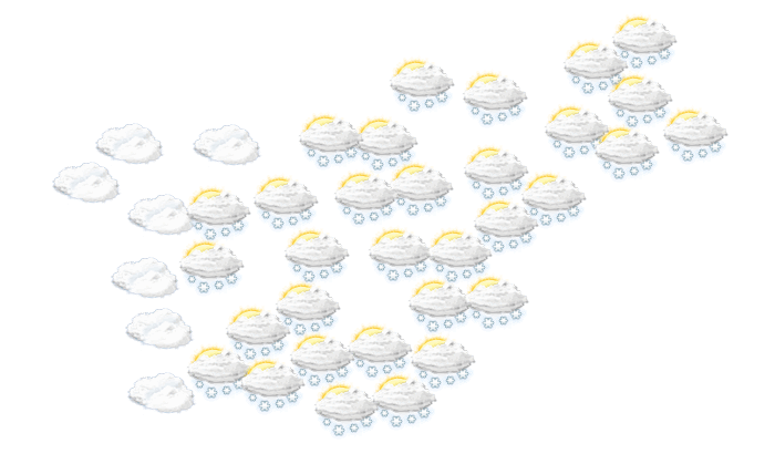 In Rosalnice kommt es den ganzen Tag zu Schneefällen und die Temperaturen liegen zwischen -2 und -1°C. Nachts kommt es zu Schneefällen und die Werte gehen auf -3°C zurück. Mit Böen zwischen 7 und 8 km/h ist zu rechnen.