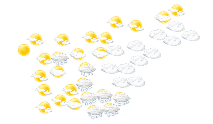 In Olimje ist von morgens bis zum Nachmittag der Himmel bedeckt, die Sonne ist nicht zu sehen und die Temperaturen liegen zwischen 0 und 3°C. Abends sollte in Olimje der Schirm nicht vergessen werden, da es regnet bei Werten von 0 bis zu 1°C. Nachts gibt es Schnee bei Tiefsttemperaturen von 0°C. Mit Böen zwischen 11 und 18 km/h ist zu rechnen.