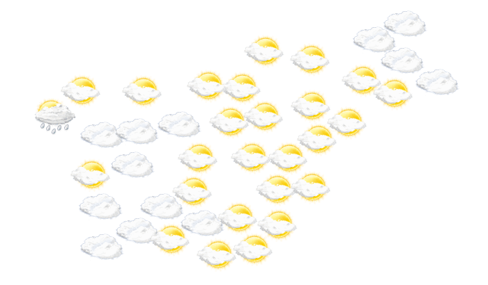 In Šalovci bleibt tagsüber die Wolkendecke geschlossen und die Temperaturen liegen zwischen 3 und 4°C. In der Nacht gibt es nur selten Lücken in der Wolkendecke bei Werten von 3°C. Böen können Geschwindigkeiten zwischen 20 und 25 km/h erreichen.