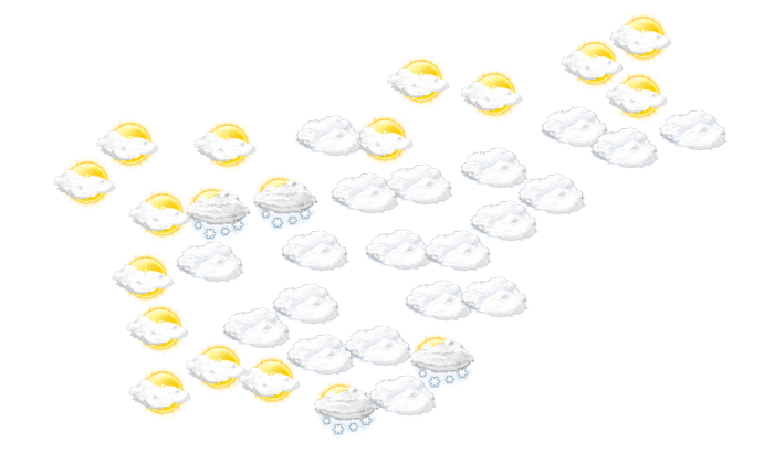 In Topolšica ist tagsüber der Himmel bedeckt, die Sonne ist nicht zu sehen bei Werten von -7 bis zu -2°C. In der Nacht ist es klar und die Luft kühlt sich auf -10°C ab. Böen können Geschwindigkeiten zwischen 3 und 12 km/h erreichen.