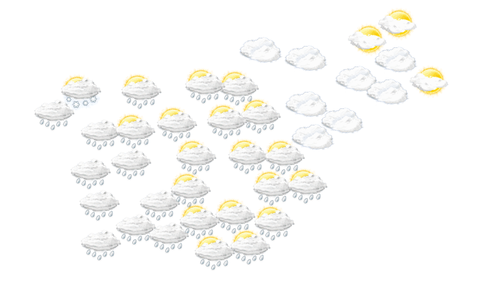 In Malahorna ist am Morgen der Himmel bedeckt, die Sonne ist nicht zu sehen bei Temperaturen von 3°C. Im weiteren Tagesverlauf sind anhaltende Schauer zu erwarten und die Temperaturen erreichen 7°C. Abends ist es in Malahorna wolkig und die Temperatur liegt bei 3°C. Nachts ist es bedeckt bei Tiefsttemperaturen von 3°C. Böen können Geschwindigkeiten zwischen 11 und 17 km/h erreichen.