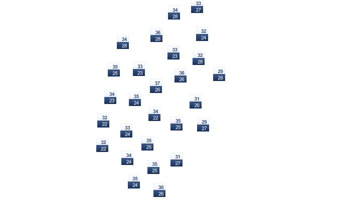 | 20 | 22 | 23 | 25 | 27 | 30 | 31 | 31 | 29 | 24 | 22 | 20 |