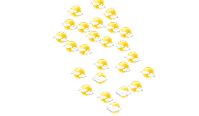 In Adado gibt es morgens mehr Wolken als Sonne und die Temperatur liegt bei 18°C. Am Mittag verdecken einzelne Wolken die Sonne und die Höchstwerte liegen bei 33°C. Abends ist es in Adado wolkenlos bei Temperaturen von 23 bis 28°C. Nachts stören nur einzelne Wolken den sonst klaren Himmel bei Werten von 18°C.