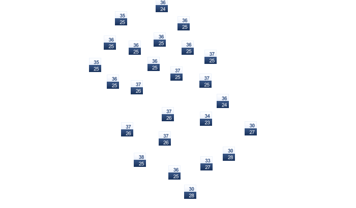 | 20 | 22 | 23 | 25 | 27 | 30 | 31 | 31 | 29 | 24 | 22 | 20 |