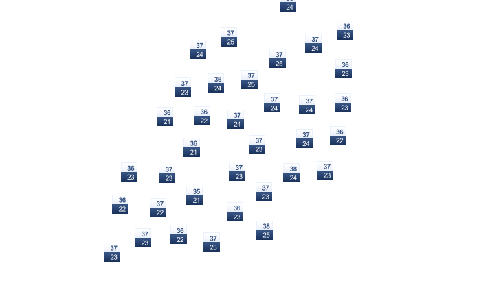 | 20 | 22 | 23 | 25 | 27 | 30 | 31 | 31 | 29 | 24 | 22 | 20 |