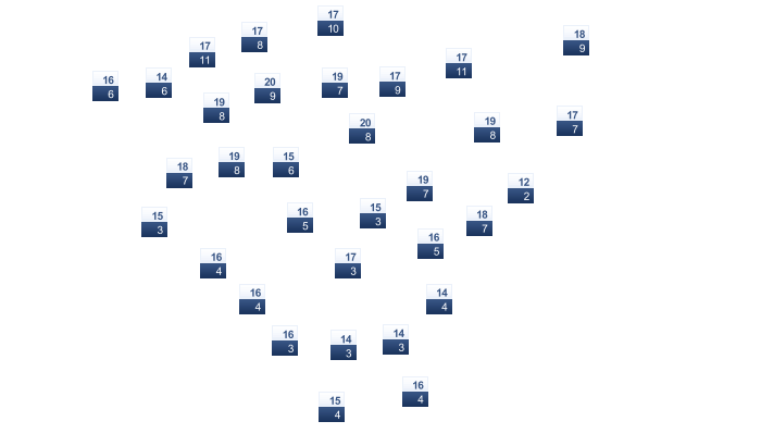 | 8 | 8 | 8 | 9 | 11 | 13 | 15 | 16 | 15 | 13 | 10 | 8 |
