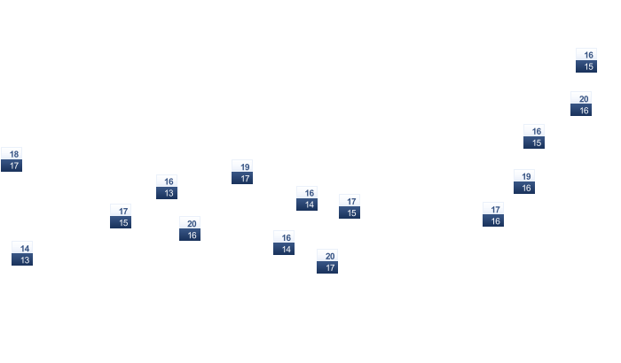 | 13 | 13 | 14 | 15 | 17 | 20 | 22 | 22 | 22 | 19 | 16 | 14 |