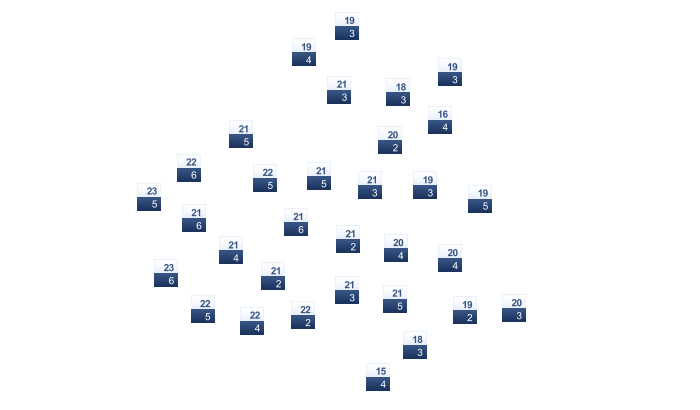 | 13 | 13 | 14 | 15 | 17 | 20 | 22 | 22 | 22 | 19 | 16 | 14 |