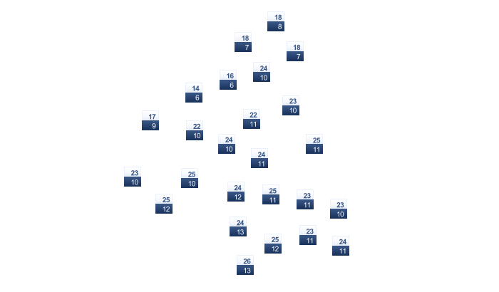 8 | 8 | 8 | 9 | 11 | 13 | 15 | 16 | 15 | 13 | 10 | 8 |