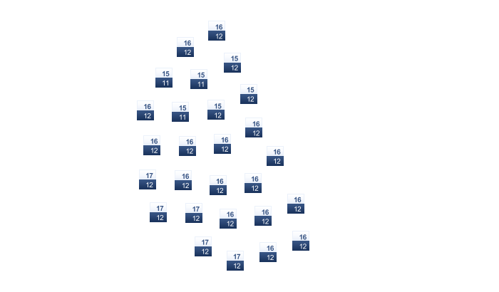 | 8 | 8 | 8 | 9 | 11 | 13 | 15 | 16 | 15 | 13 | 10 | 8 |