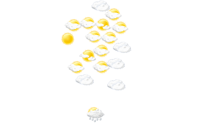 In Longyearbyen wird den ganzen Tag die Sonne von einzelnen Wolken verdeckt bei Werten von -7 bis zu -5°C. In der Nacht gibt es nur selten Lücken in der Wolkendecke bei Werten von -4°C. Böen können Geschwindigkeiten zwischen 33 und 35 km/h erreichen.