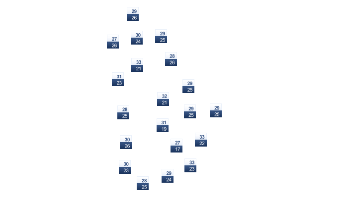| 31 | 31 | 32 | 32 | 31 | 30 | 30 | 30 | 30 | 30 | 30 | 30 |