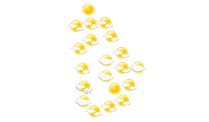 In Kandy sind von morgens bis zum Nachmittag Teile des Himmels mit Wolken bedeckt, die Sonne ist aber zwischendurch sichtbar bei Werten von 20 bis zu 28°C. Am Abend gibt es in Kandy einen wolkenlosen Himmel und die Temperaturen liegen zwischen 20 und 21 Grad. Nachts verdecken einzelne Wolken den Himmel und die Werte gehen auf 18°C zurück.