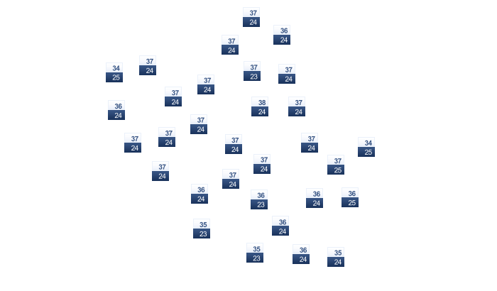 | 22 | 23 | 24 | 25 | 26 | 26 | 25 | 25 | 25 | 24 | 23 | 23 |