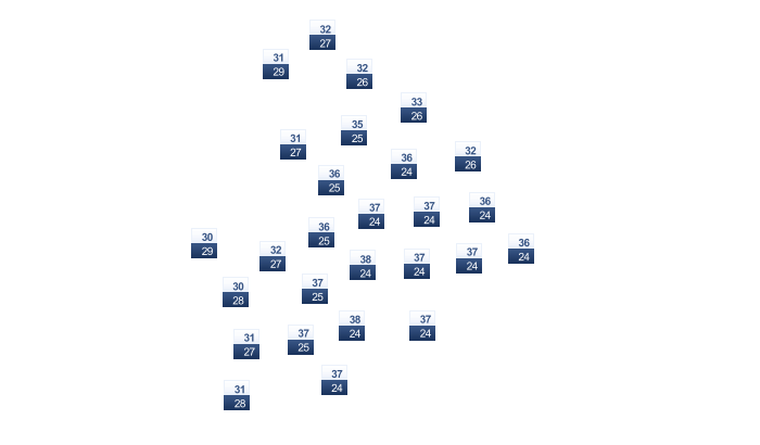 | 31 | 31 | 32 | 32 | 31 | 30 | 30 | 30 | 30 | 30 | 30 | 30 |