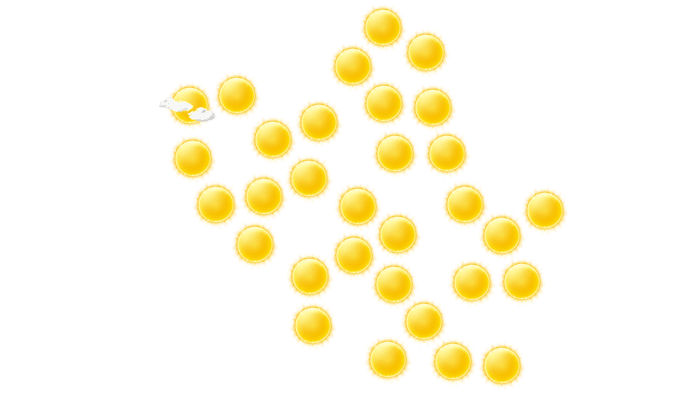In Polonnaruwa ist es den ganzen Tag sonnig bei Temperaturen von 21 bis 36°C. In der Nacht verdecken einzelne Wolken den Himmel bei einer Temperatur von 22°C.