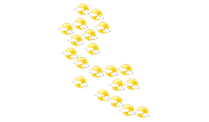 In Kegalle gibt es morgens lockere Bewölkung bei Werten von 21°C. Später wechseln sich Wolken und Sonne ab bei Höchstwerten von 36°C. Am Abend gibt es in Kegalle keine Wolken und die Temperaturen liegen zwischen 24 und 26 Grad. Nachts ist es wolkenlos bei Werten von 21°C.