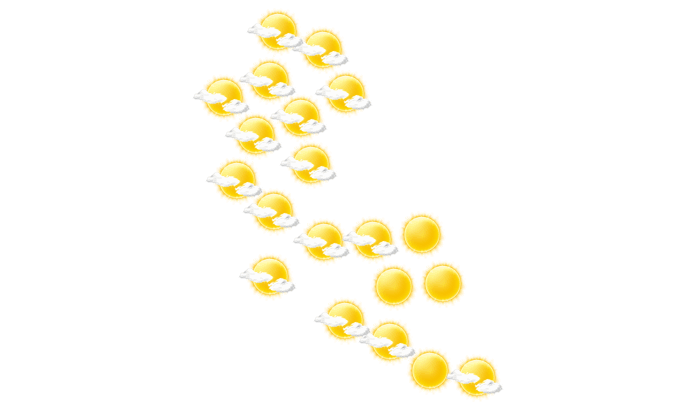 In Hiriketiya strahlt morgens die Sonne bei Temperaturen von 20°C. Im weiteren Tagesverlauf zeigt sich am Nachmittag und am Abend die Sonne zwischen einzelnen Wolken bei Werten von 22 bis zu 31°C. In der Nacht ist es klar und die Werte gehen auf 19°C zurück.