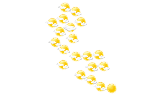 In Kegalle gibt es vormittags und auch am Nachmittag keine Wolken, die Sonne scheint bei Temperaturen von 21 bis 36°C. Abends ist es in Kegalle leicht bewölkt bei Temperaturen von 24 bis 26°C. In der Nacht gibt es keine Wolken und die Sterne sind klar zu erkennen bei Tiefsttemperaturen von 21°C.