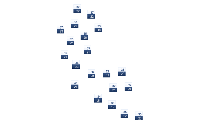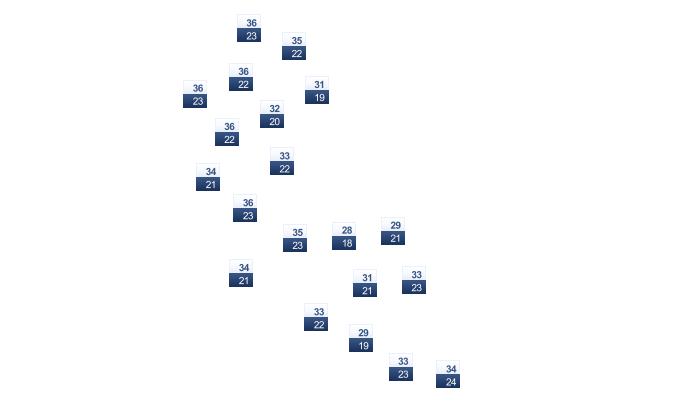 | 22 | 23 | 24 | 25 | 26 | 26 | 25 | 25 | 25 | 24 | 23 | 23 |
