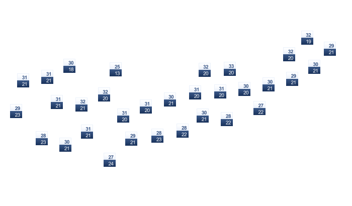| 31 | 31 | 32 | 32 | 31 | 30 | 30 | 30 | 30 | 30 | 30 | 30 |