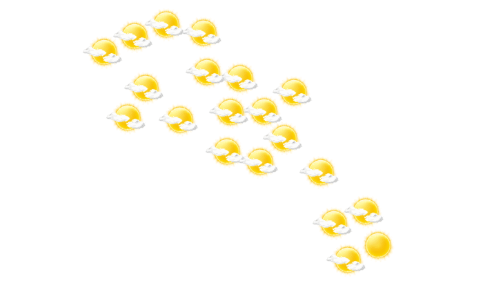 In Montpelier strahlt morgens die Sonne und die Temperatur liegt bei 24°C. Darüber hinaus gibt es von mittags bis zum Abend hin eine Mischung aus Sonne und Wolken und die Temperaturen liegen zwischen 24 und 25 Grad. In der Nacht ist es überwiegend klar mit vereinzelten Wolken bei Werten von 24°C. Mit Geschwindigkeiten von 31 bis 34 km/h weht der Wind aus östlicher Richtung.