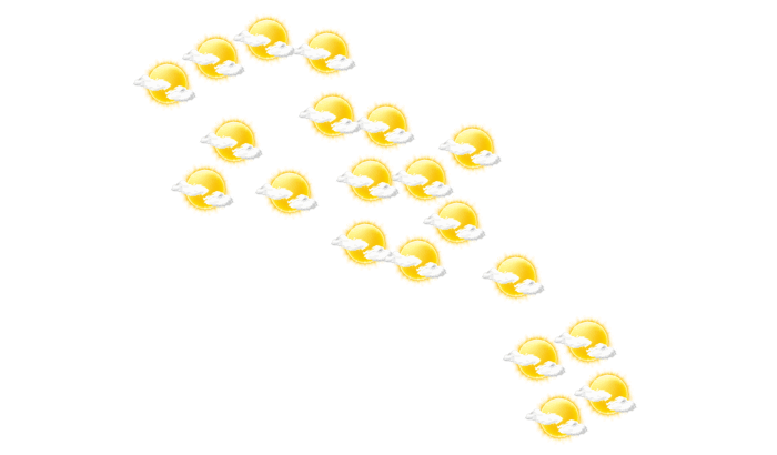 In Cayon strahlt am Morgen die Sonne bei Temperaturen von 25°C. bei Temperaturen von 25°C. In der Nacht ist es überwiegend klar mit vereinzelten Wolken bei Werten von 25°C. Aus östlicher Richtung weht der Wind und erreicht dabei Geschwindigkeiten von 27 bis 30 km/h.